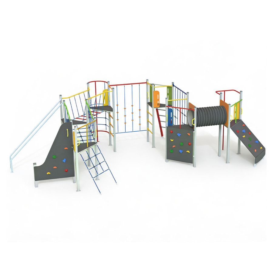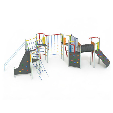 Percorso acrobatico che stimola le attività psicofisiche e la socializzazione tra bambini. Conforme alla Norma UNI EN 1176.