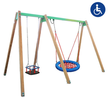 Altalena per bambini con 1 sedile a tavoletta, i sedile a cestello ed 1 cestone inclusivo.