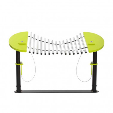 Strumento musicale a percussione con barre in metallo accordate per produrre toni caldi e melodiosi. Progettato per ambienti esterni, resistente agli agenti atmosferici e raggi UV. Ideale per attività educative e ludiche all'aperto.