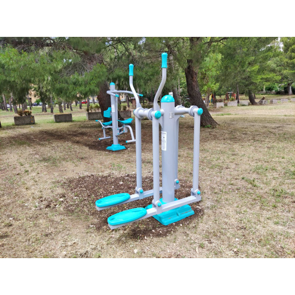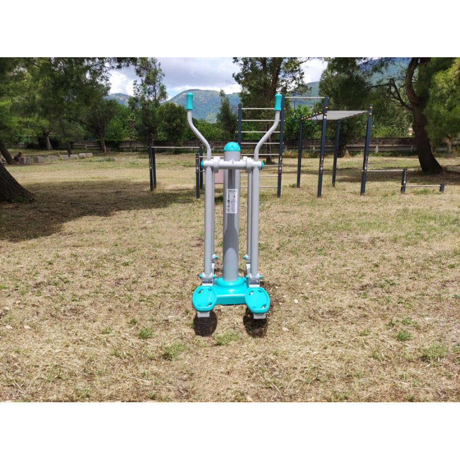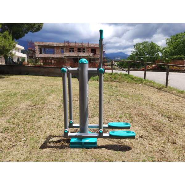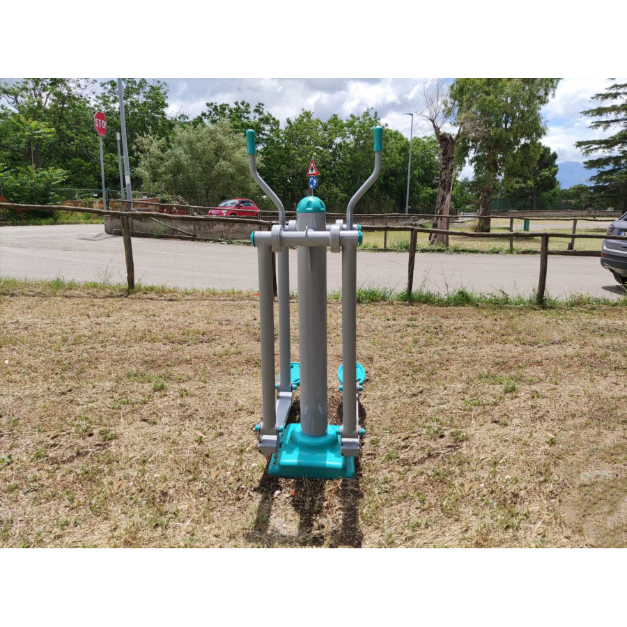 La Fitness SLT Single Walker è un'attrezzatura da esterno conforme alla Norma UNI EN 16630, garantendo sicurezza e qualità. La sua struttura è realizzata con profilati di acciaio a sezione circolare verniciata a forno a 180° con polvere epossidica, rendendola ideale per resistere all'ambiente esterno. Dispone di un montante verticale a sezione circolare realizzato con profilati di acciaio verniciato di diametro Ø 139 mm, lunghezza 1200 mm e spessore 3 mm. Le parti mobili in acciaio di diametro 60 mm e spessore 3 mm sono collegate al corpo principale mediante cuscinetti. I poggiapiedi con bordi arrotondati sono realizzati in polietilene a bassa densità a stampaggio rotazionale. L’attrezzatura stimola prevalentemente la muscolatura degli arti inferiori e delle braccia. Il tappo copripalo è in polietilene a bassa densità. L'assemblaggio avviene mediante bulloneria in acciaio zincato e copribulloni in plastica, assicurando stabilità e durabilità.