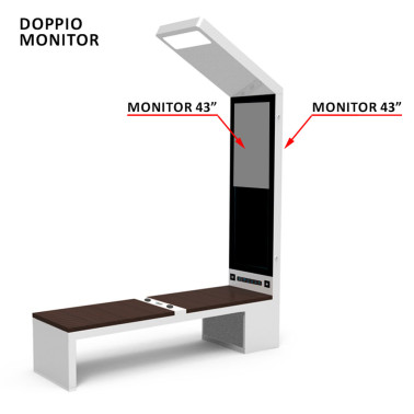 PANCHINA SMART INOX CON 2 MONITOR INTEGRATI NEL TOTEM CM 203 X 68,6 X 309 (H)