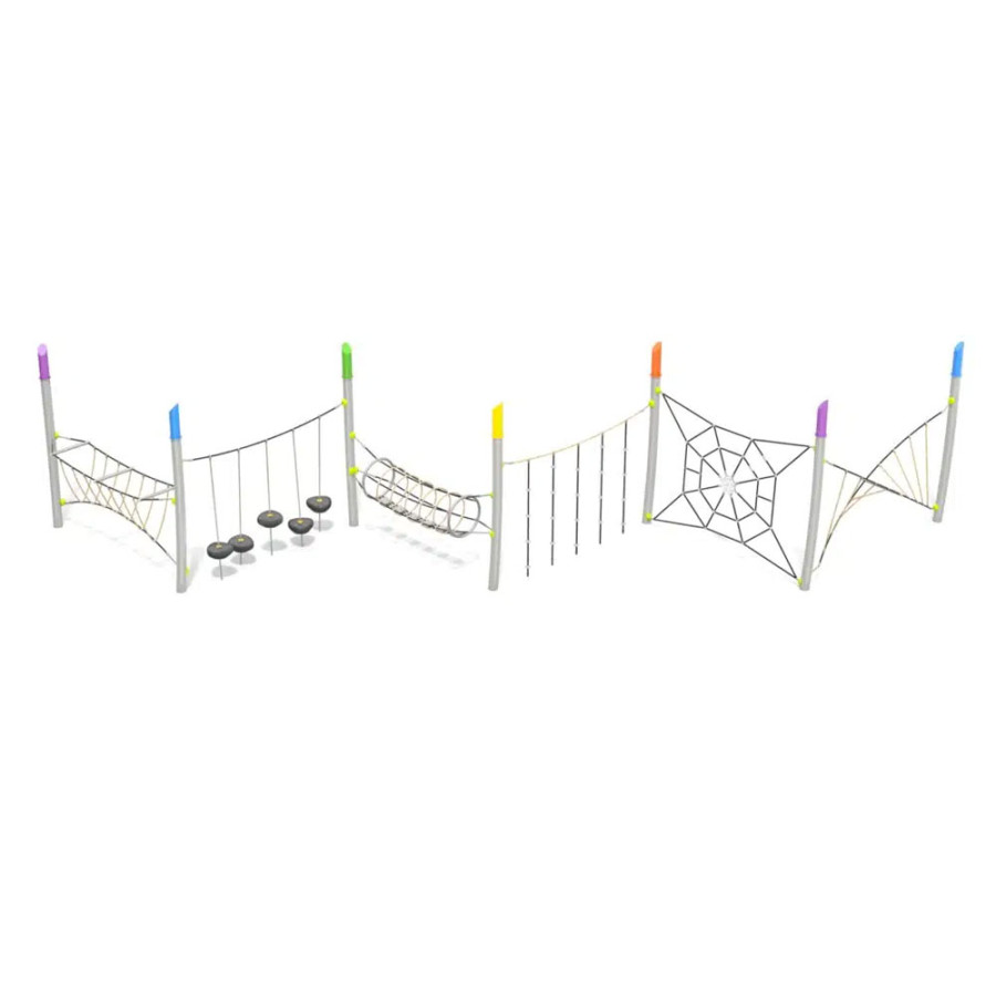 Struttura da gioco costituita da diversi moduli che stimolano le attività psicofisiche e la socializzazione tra bambini. Conforme alla Norma UNI EN 1176.