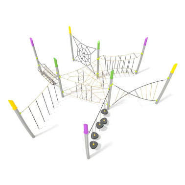 Struttura da gioco costituita da diversi moduli che stimolano le attività psicofisiche e la socializzazione tra bambini. Conforme alla Norma UNI EN 1176.